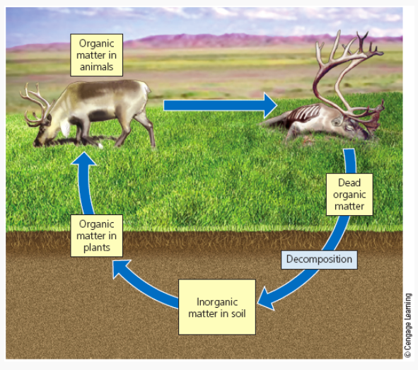 4. The continuous cycling of chemicals, without which life would not exist