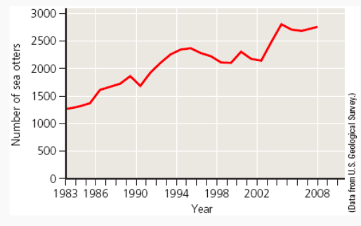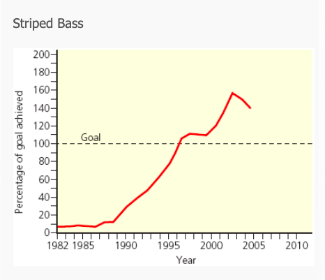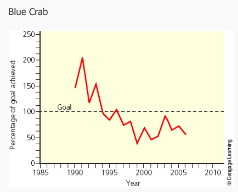 Use the graphs of the Chesapeake Bay, Maryland, striped bass and blue crab population data below to answer the next question.
