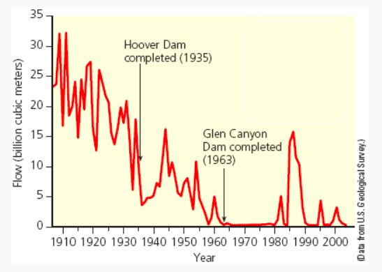 According to the graph, the flow of the Colorado River has