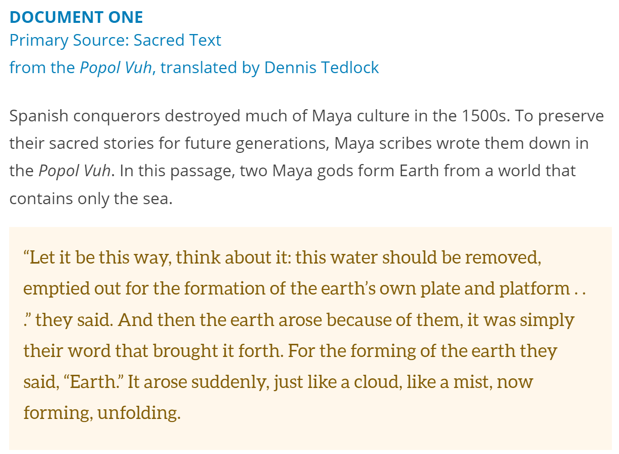The most famous Mayan book is called the _____ _____, which recounts the Maya creation story.