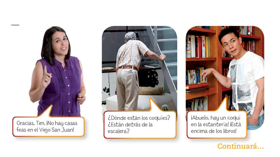 Los coquíes están | arrow_right_alt | encima de los libros |