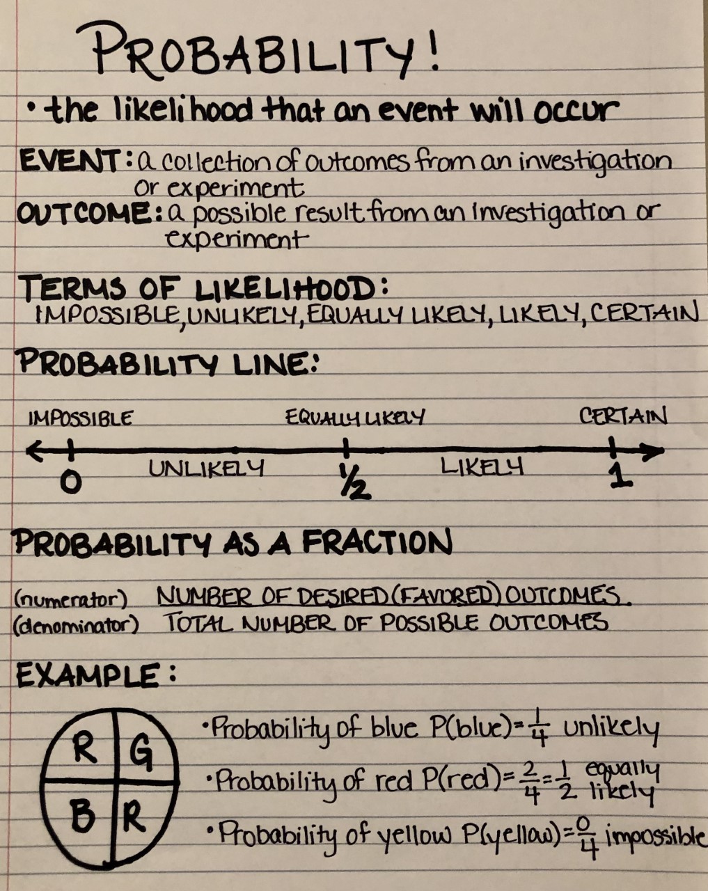 Draw a spinner where spinning the color red is 1/4.
