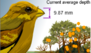 Experiment: Use the sliders to set the Rain to 2 inches for each of the five years in the simulation. Click Play, and wait for five years. Observe the beak of the finch.