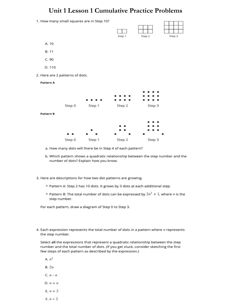 Pattern A: How many dots in Step 1?