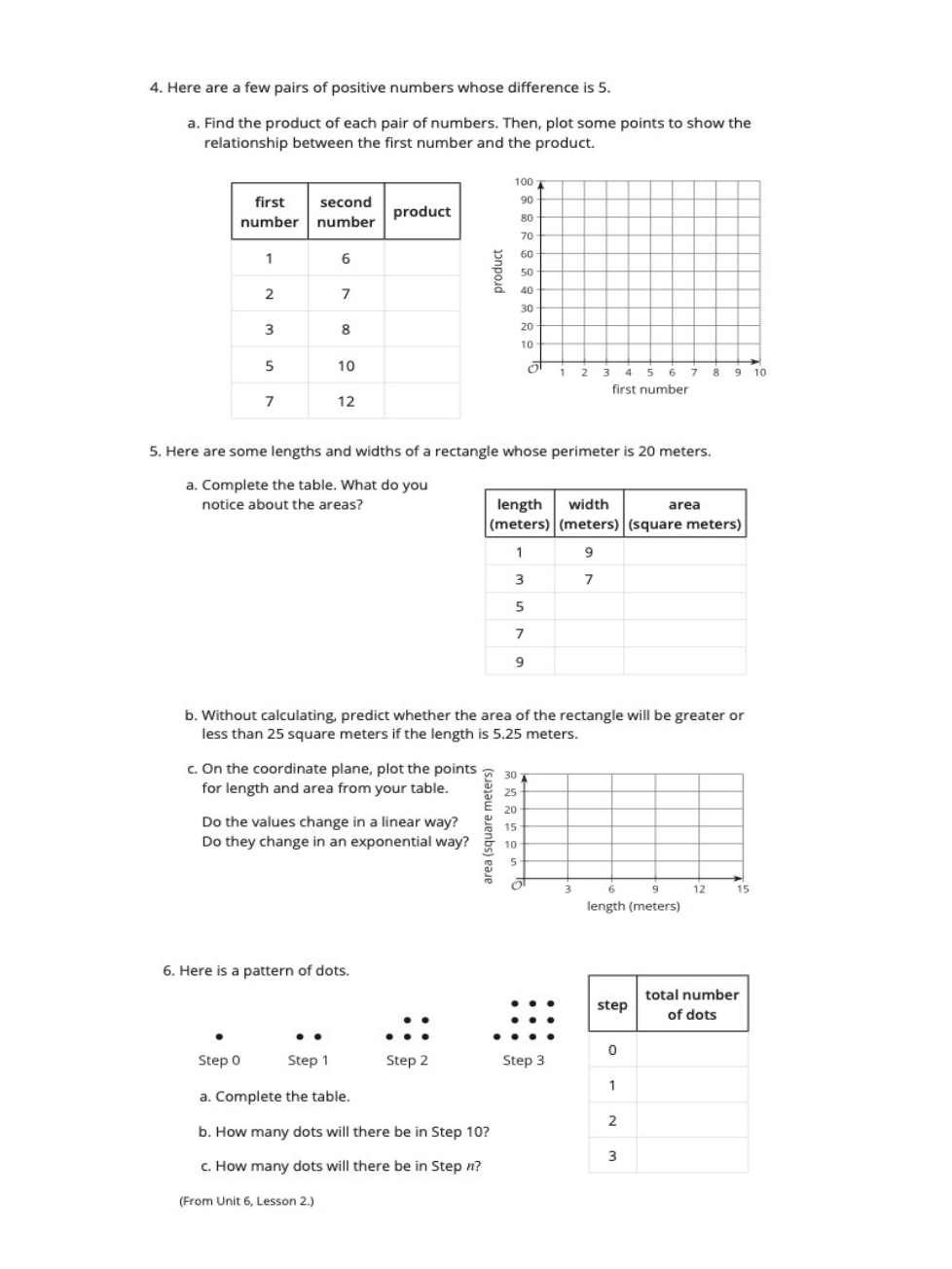 On the coordinate plane, plot the ponts for length and area from your table. Is the graph linear?