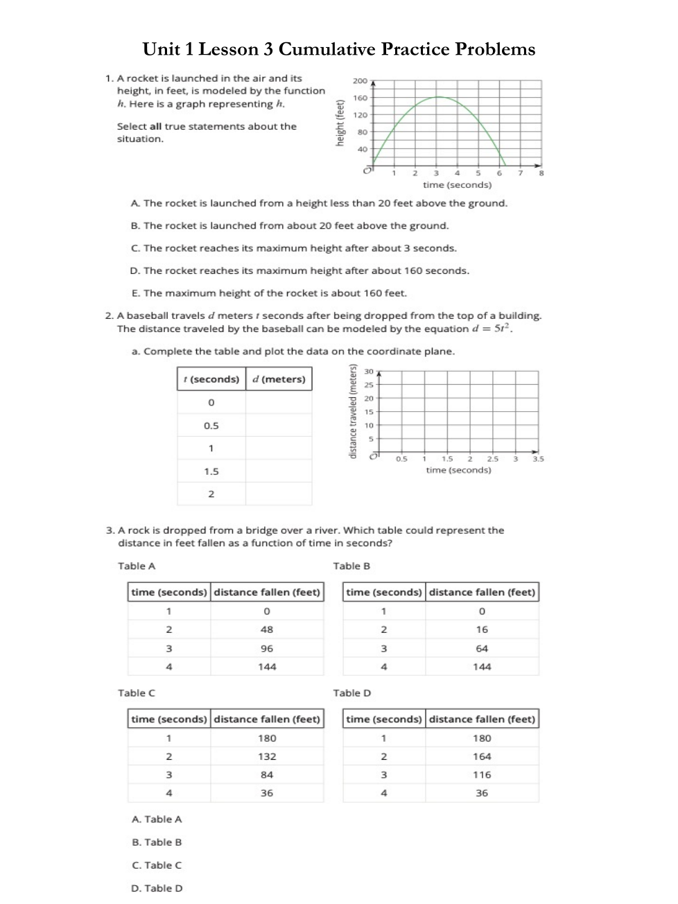 Which table could represent the distance in feet fallen as a function of time in seconds?