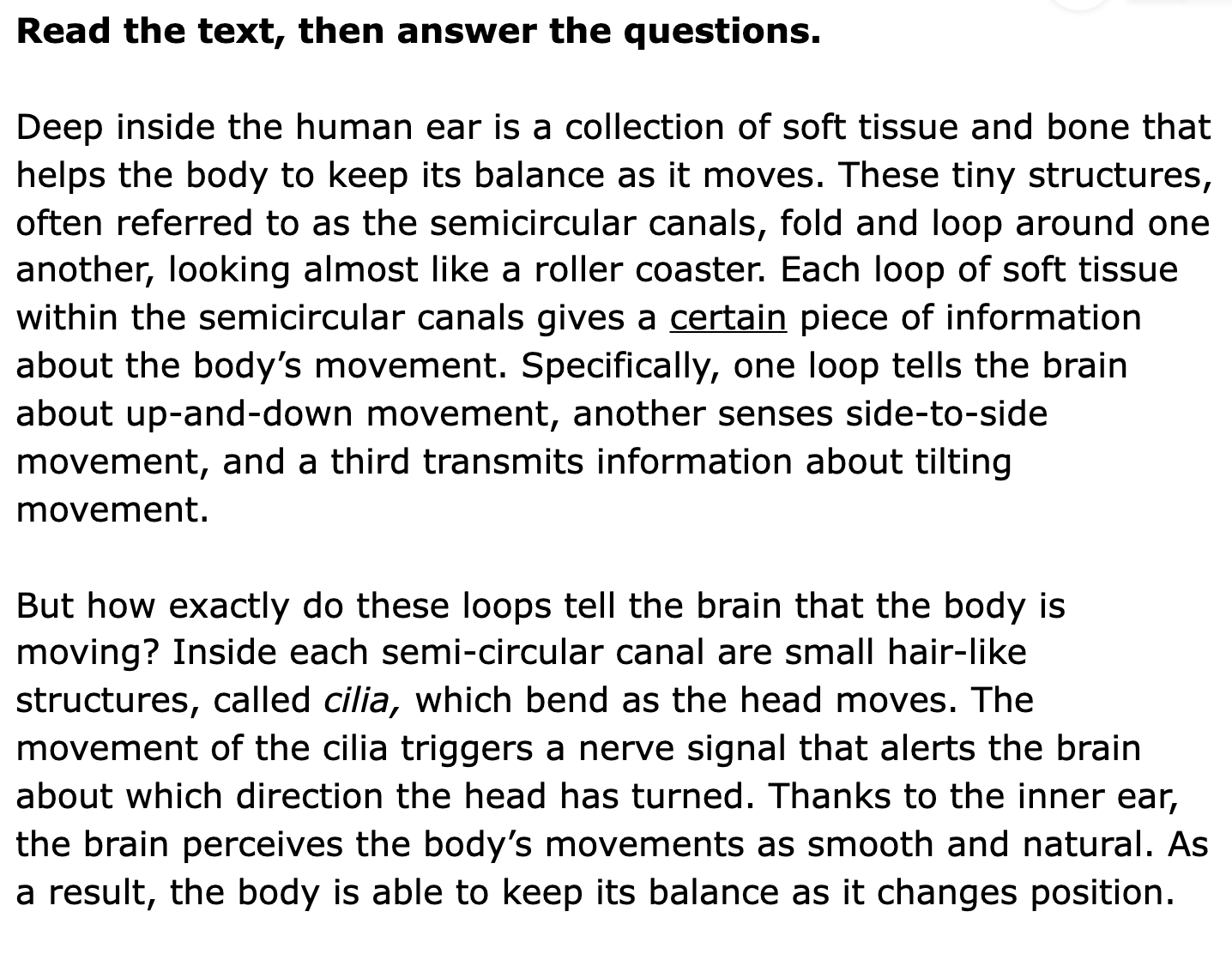 Each loop of soft tissue within the semicircular canals gives a certain piece of information about the body's movement.