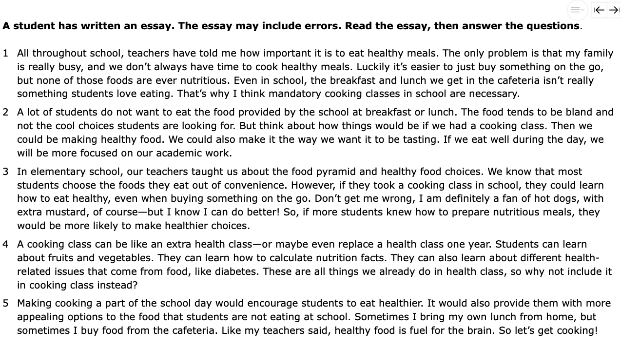In elementary school, our teachers taught us about the food pyramid and healthy food choices. We know that most students choose the foods they eat out of convenience. However, if they took a cooking class in school, they could learn how to eat healthy, even when buying soemthing on the go. Don't get me wrong, I am definietly a fan of hot dogs, with extra mustard, of course-but I know I can do better! So, if more students knew how to prepare nutritious meals, they would be more likely to make healthier choices.