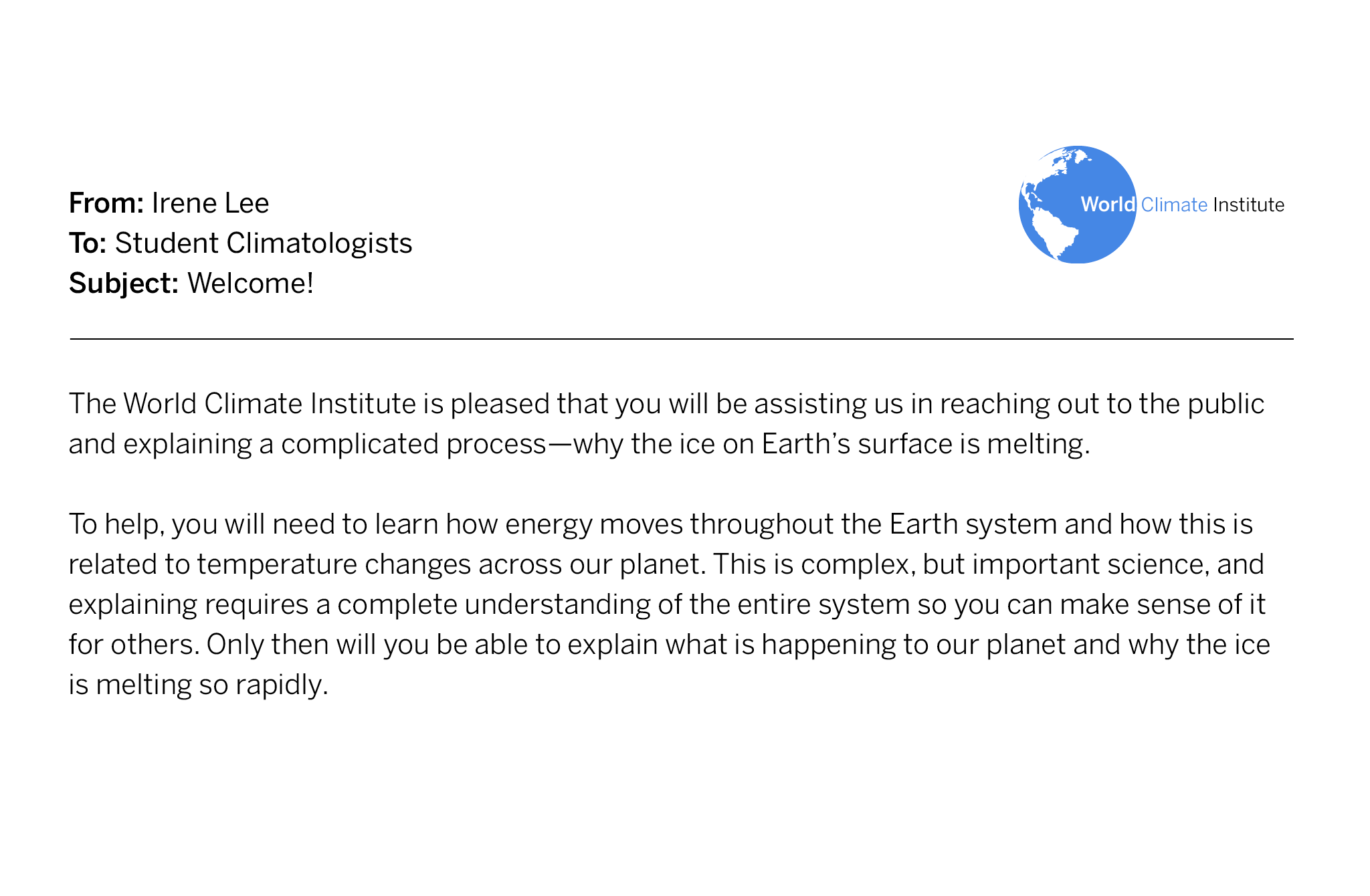 Read the email below from the World Climate Institute to find out more about your role. Although this is a fictional organization, it is based on real ones that are dedicated to studying and solving this same problem!