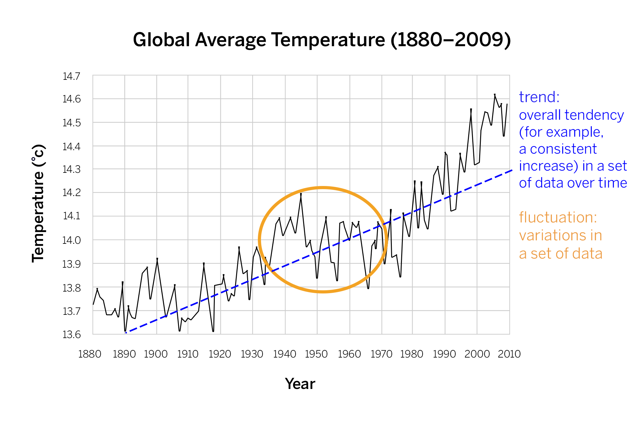 Global average temperature has increased since about 1880. Which time period's data would provide the best evidence?