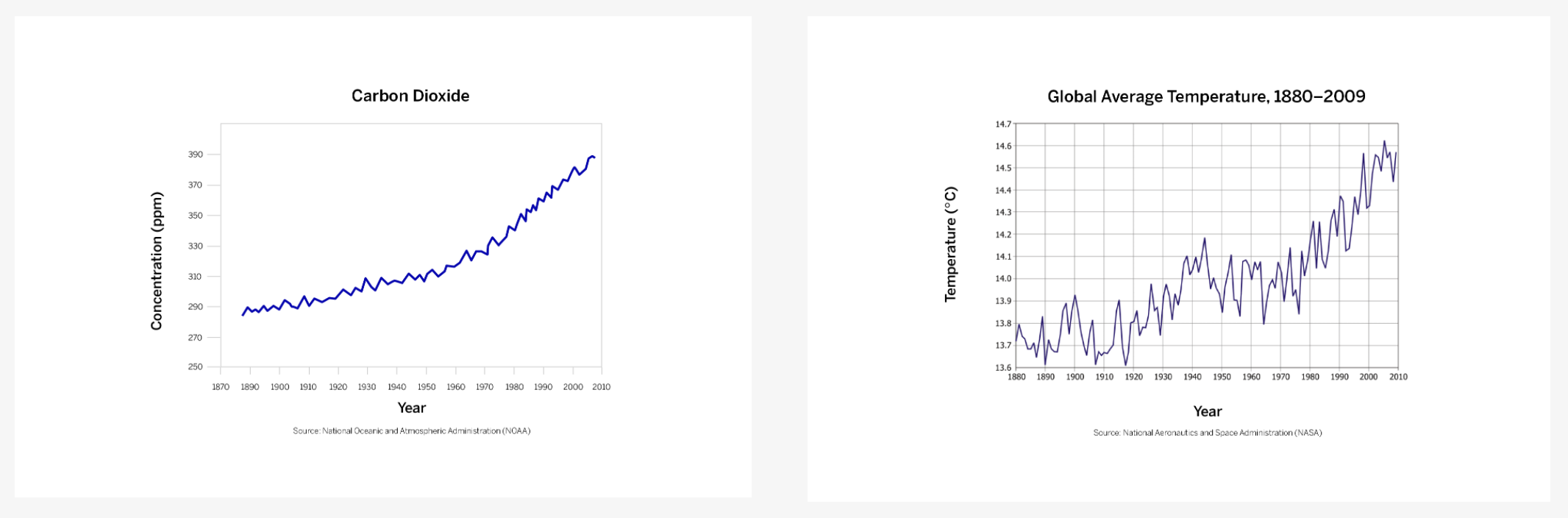 Compare the trends for carbon dioxide and temperature in the graphs below.