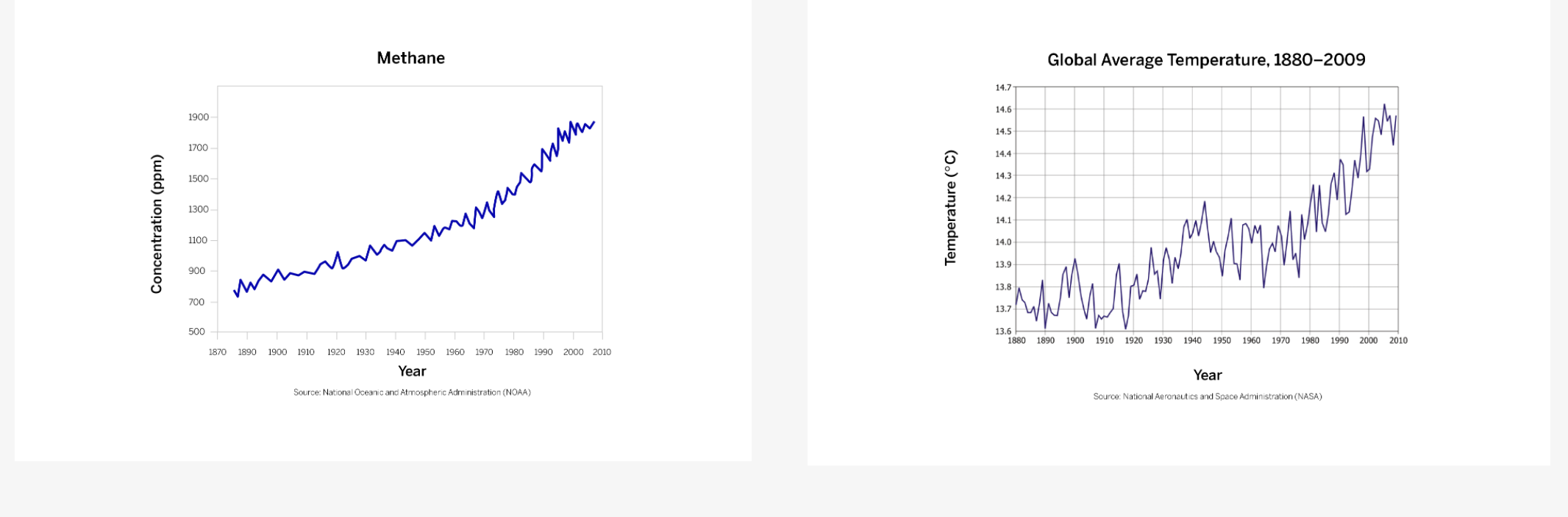 Compare the trends for methane and temperature in the graphs below.Do these graphs show the same trend?Sentence Starters: These graphs (do/do not) show the same trend. I know this because...
