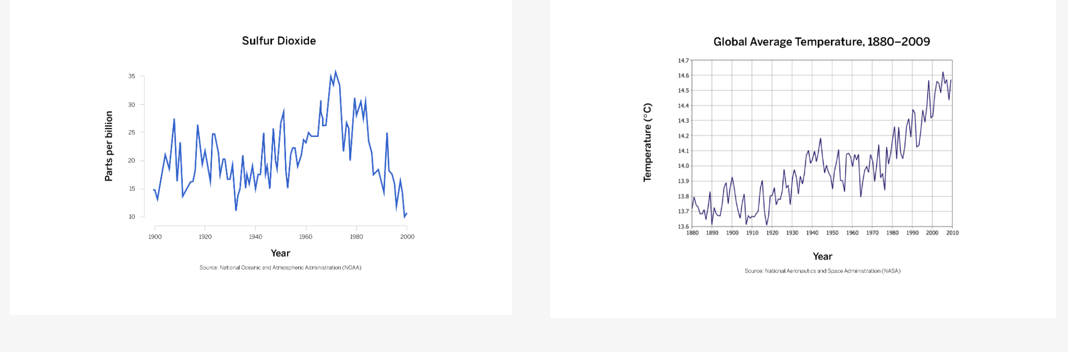 Compare the trends for sulfur dioxide and temperature in the graphs below.Do these graphs show the same trend?