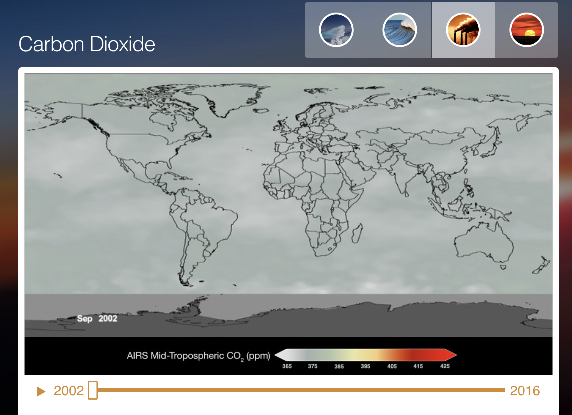 Scroll through the year 2002 to 2016.What caused so much Carbon Dioxide to be in the atmosphere?