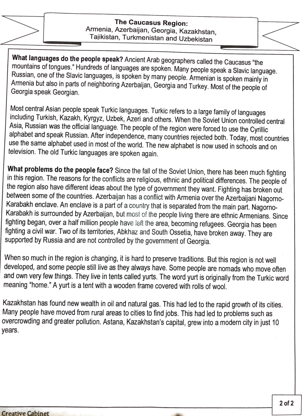 Cultural Charateristics of the Caucusus and S. Asia Regions