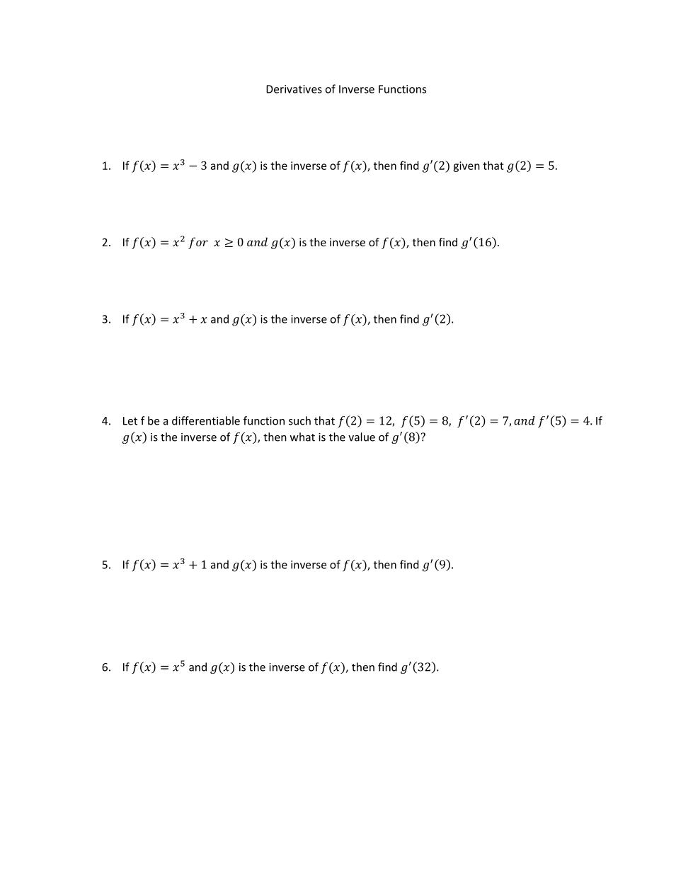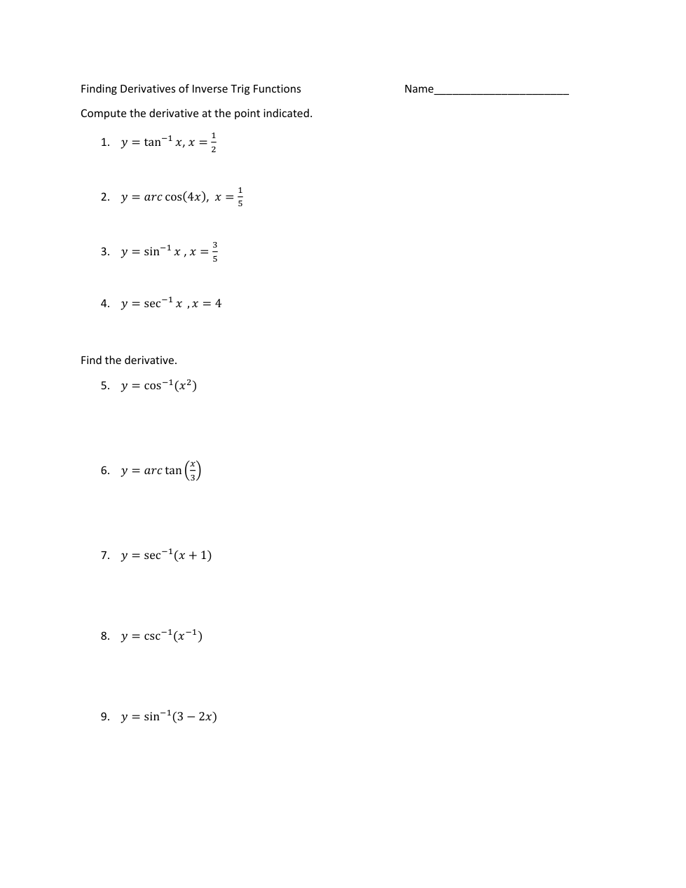 Derivatives of Inverse and Inverse Trig Functions