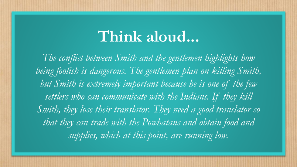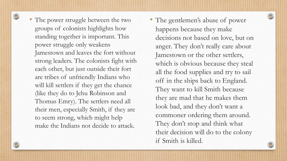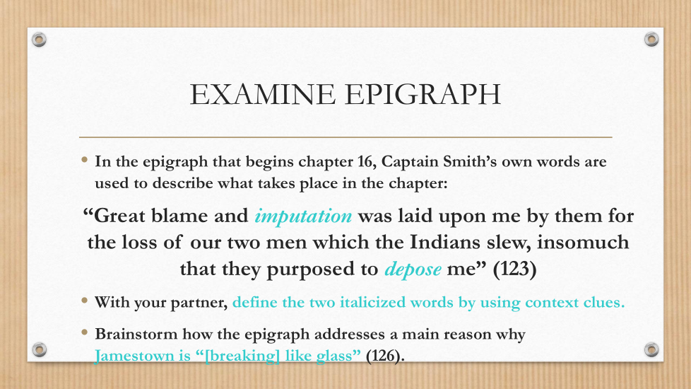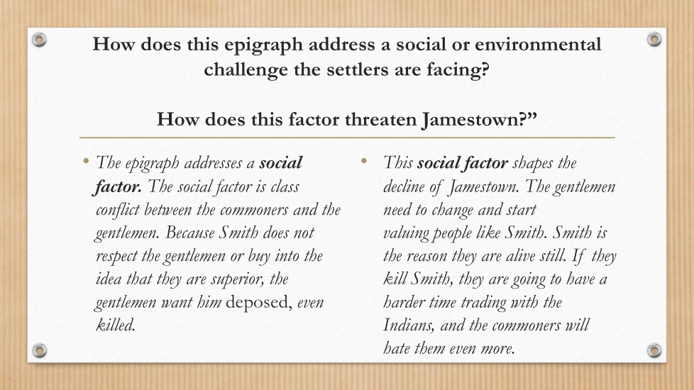 - brainstorm how the epigraph addresses a main reason why Jamestown is "[breaking] like glass" (126). (Think- pair-share)