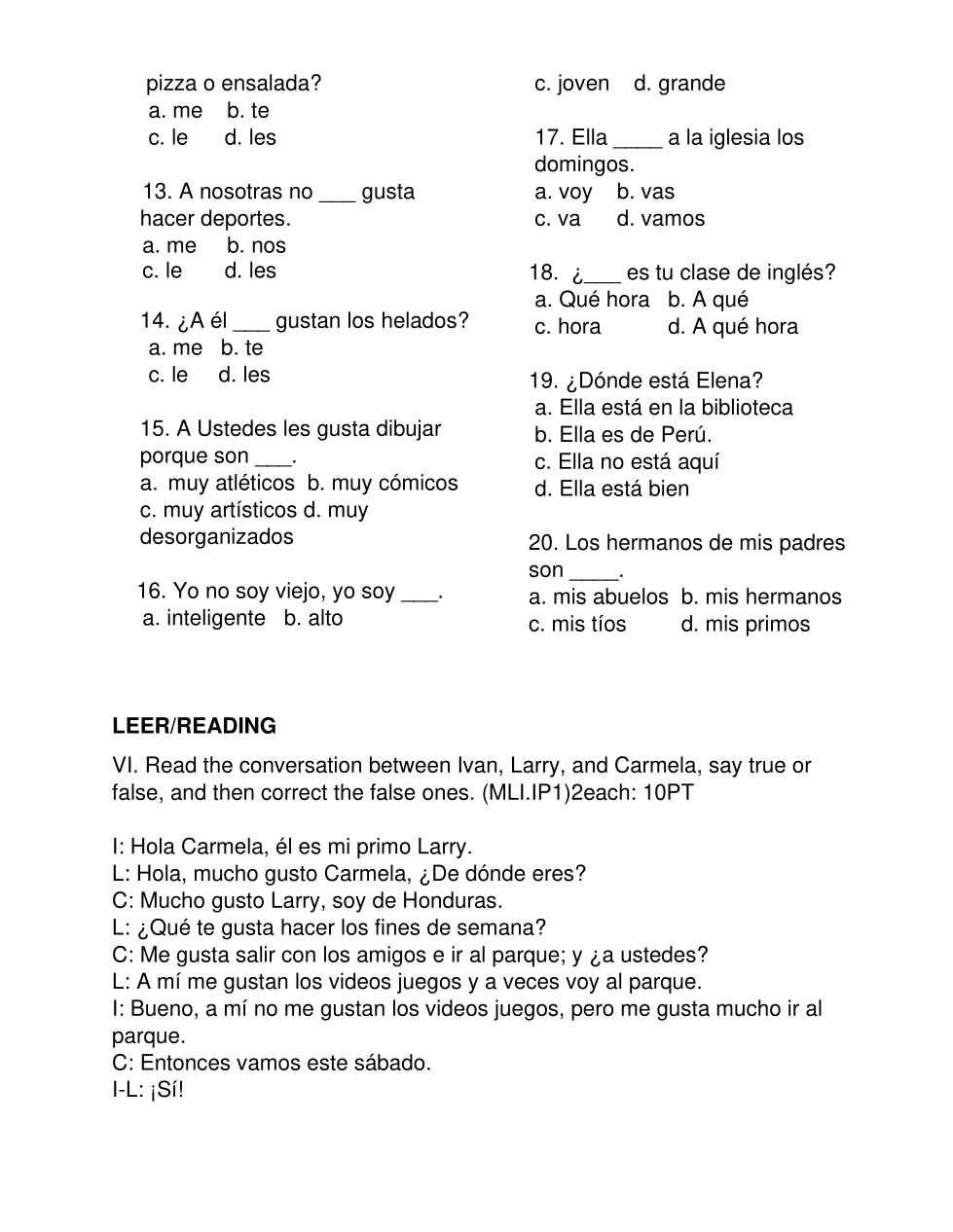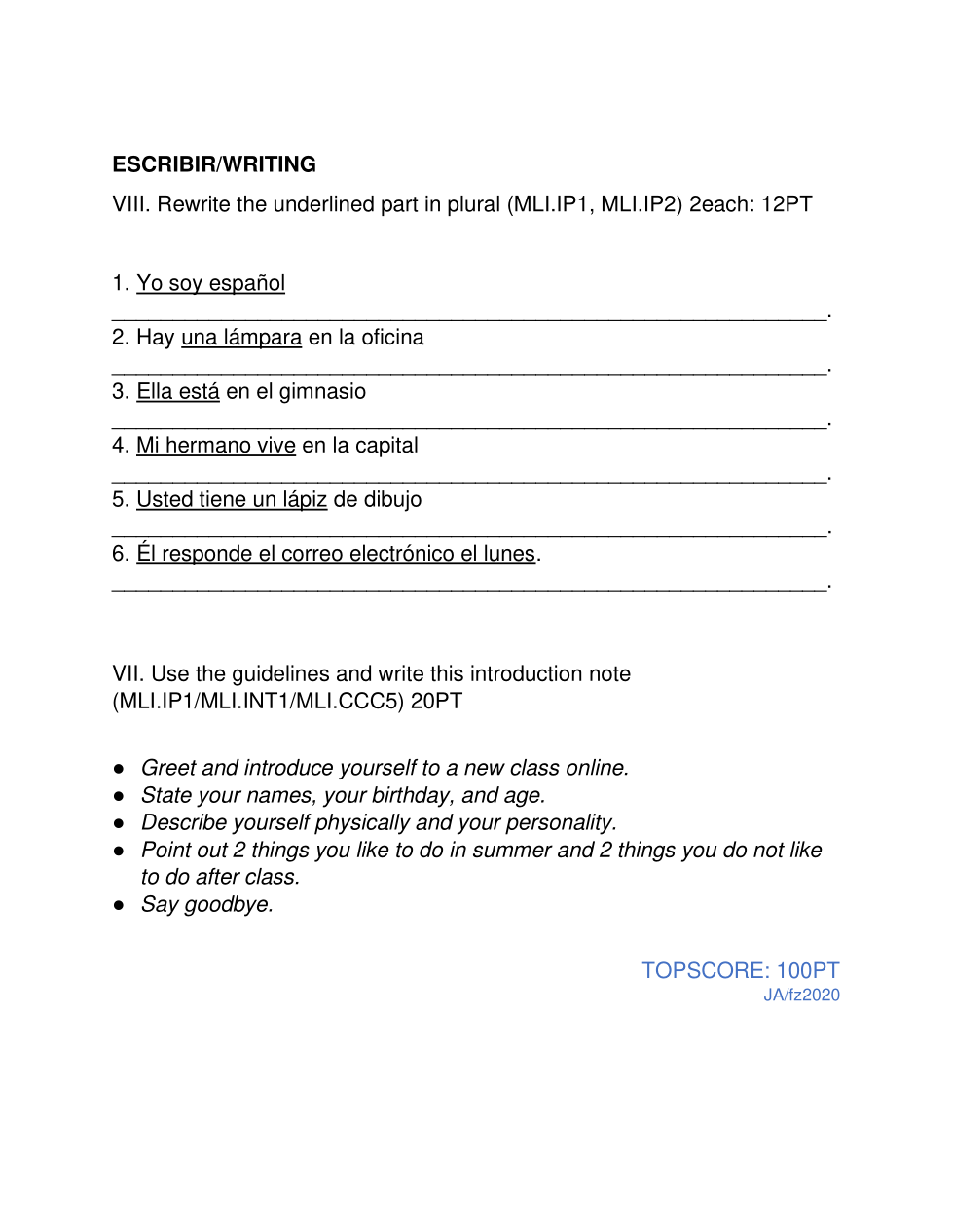 GHS-SPANISH I EXEMPTION TEST 2022-2023 JOHNY ABREU