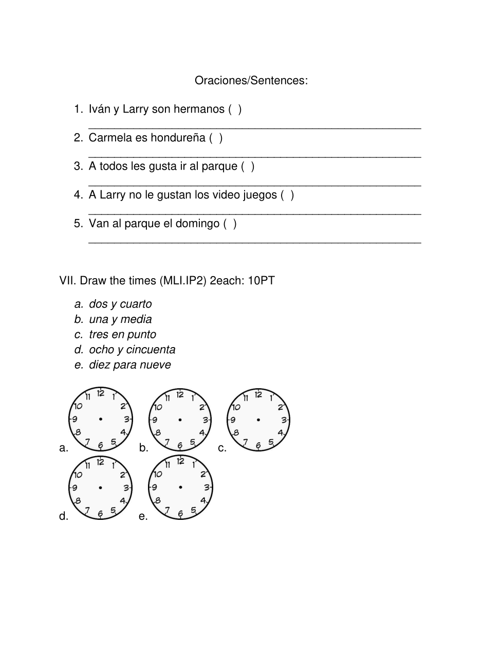 PART VII-eDibuja la hora en esta hoja y salva los cambios.
