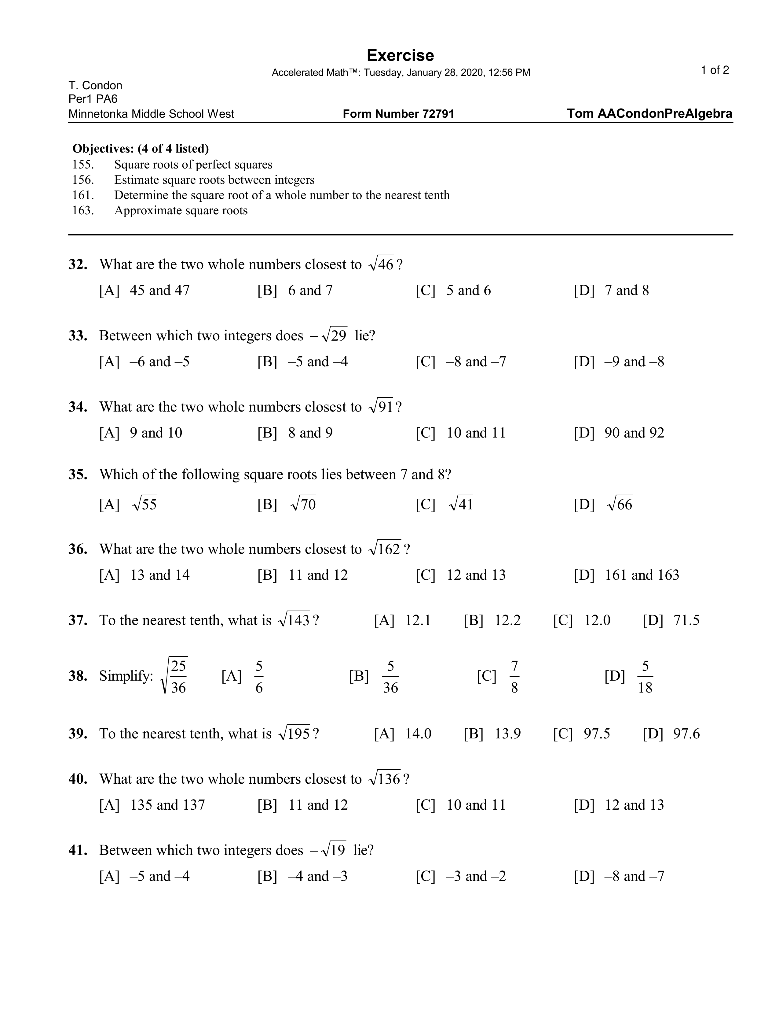 LS 4-5/4-6 Square Roots and Squares, and Estimating 21-22