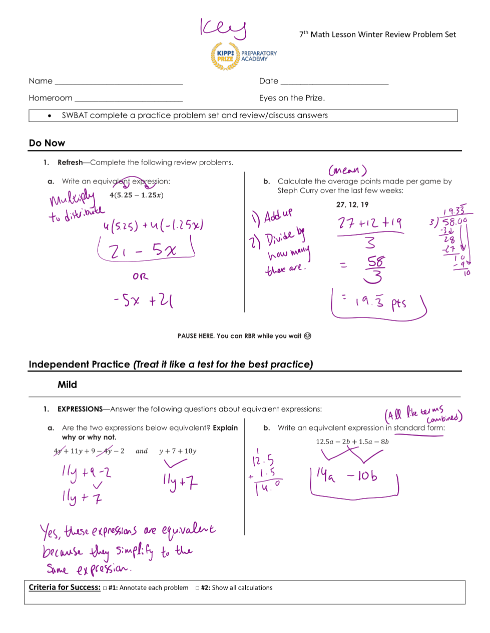 When everyone is done, we will have partner time to find mistakes. You will also have access to an answer key to see suggestions for how to solve each problem.