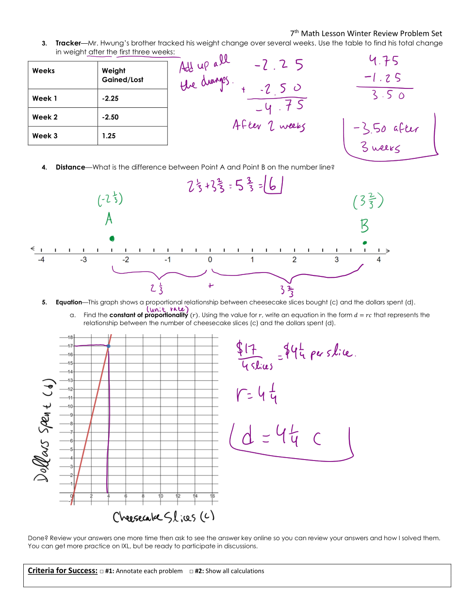 Tracker--Mr. Hwung’s brother tracked his weight change over several weeks. Use the table to find his total change in weight after the first three weeks: