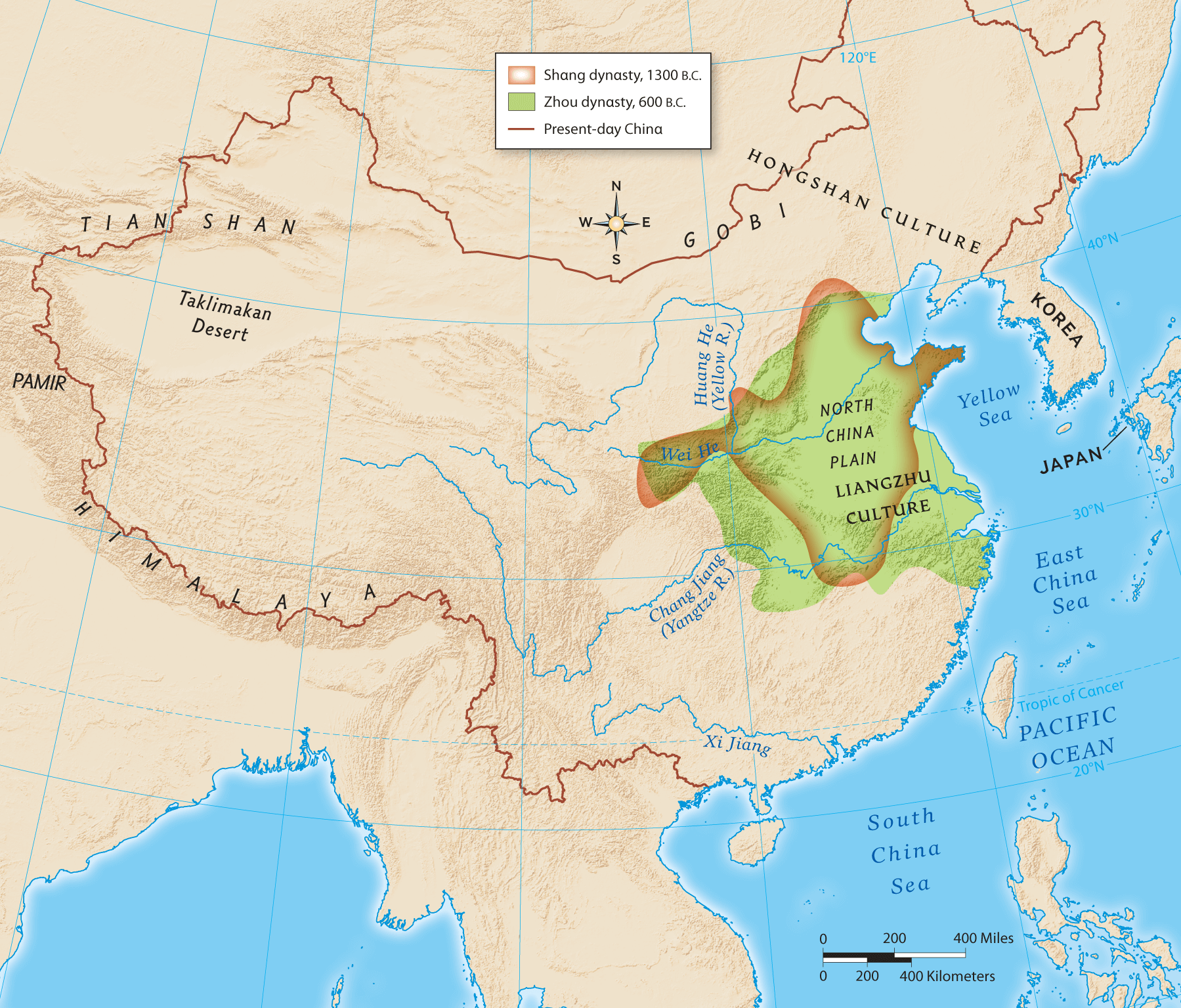 Like the ancient civilizations of Mesopotamia, Egypt, and India, China’s civilization arose along _____ _____ _____.