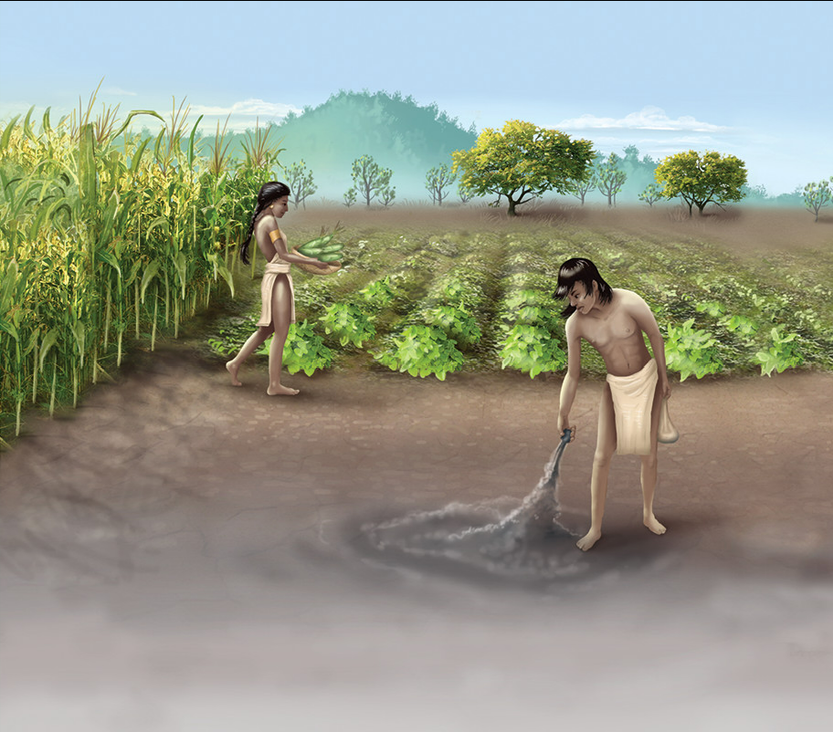 Wooded areas and jungles are too thick to plant crops. Farmers slash, or cut down, trees. Fallen trees and leaves are burned to clear the land. Ash produced by the fires is used as fertilizer. Cleared land is fertilized with ash. Farmers plant crops such as maize and squash. Farmers move on to new locations after soil on cleared land becomes less productive.
