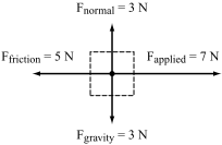 The diagram below shows an 80 kg ice skater applying a force of 10 N to a 60 kg ice skater.
