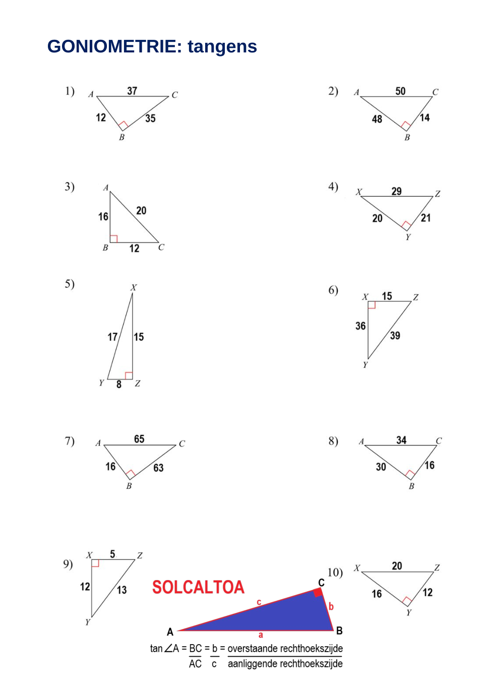 Goniometrie: tangens A