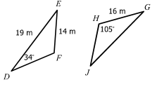 If \bigtriangleup{DEF}\cong\bigtriangleup{GJH}, find each missing measure.