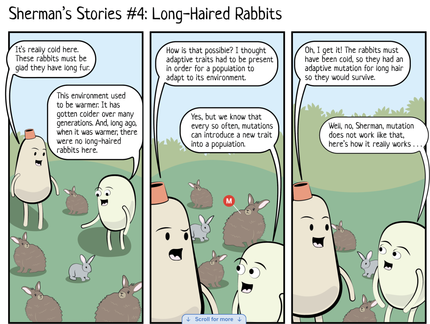 Did mutations affect which trait was the most common at Time 3? Why or why not? Add annotations to the histograms to help you answer this question. Then, write an explanation about your annotations below. Use all of these words in your explanation: