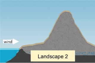 On landscape 1 the wind is blowing from the ocean toward the mountain.