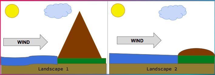Alan was looking at these two landscapes and said that the water vapor molecules will move the same in both landscapes, because the wind is blowing the same direction. Do you agree or disagree with Alan’s statement?