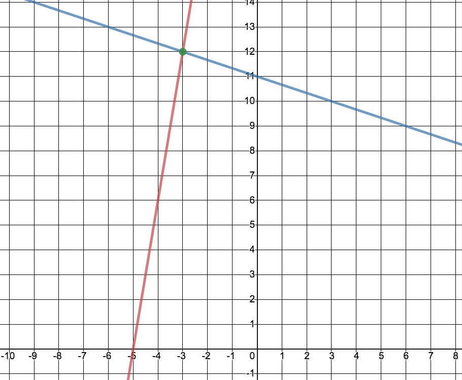 Solve the system of equations below algebraically. y=5x+20y=-3x+4