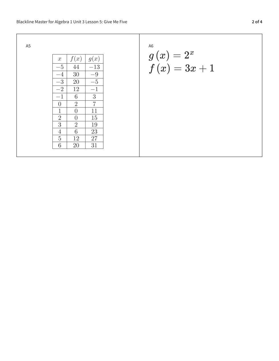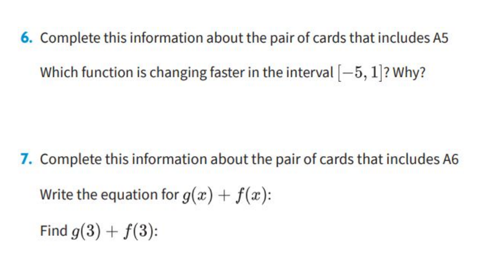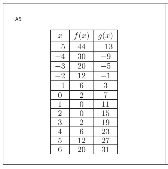 Mlinganyo wa g(x) + f(x) kwa kadi A6