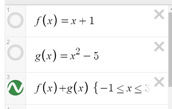 Igishushanyo f (x) + g (x) kuva [-1, 3] ku ikarita A3