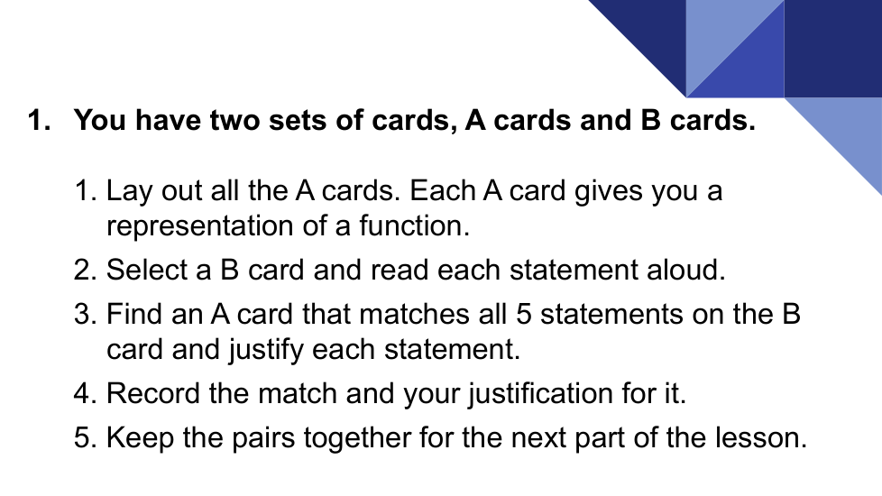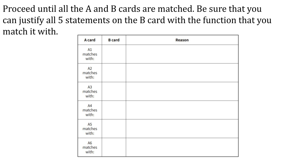 Select one set and create a 3rd representation for that function. Make sure you label which A card you are using.