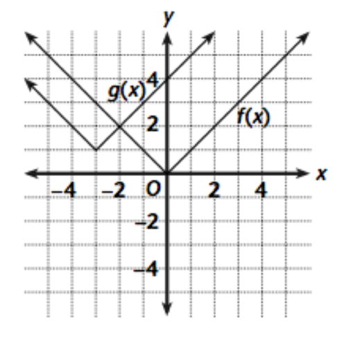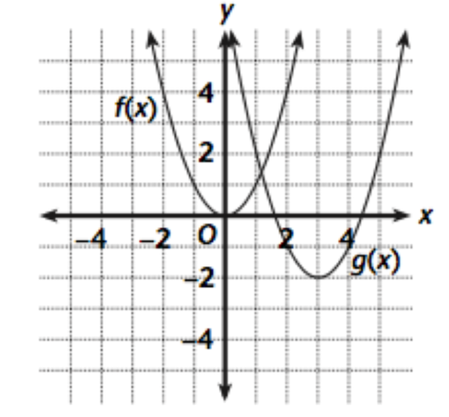 The parent function is shown by the f(x) function. Write the equation to the g(x) function.