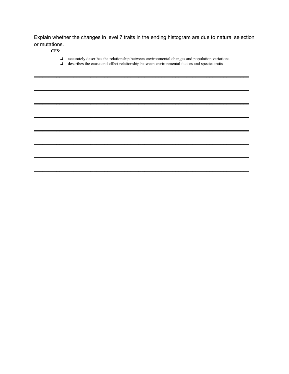 Explain whether the changes in level 7 traits in the ending histogram are due to natural selection or mutations.CFS:- accurately describes the relationship between environmental changes and population variations