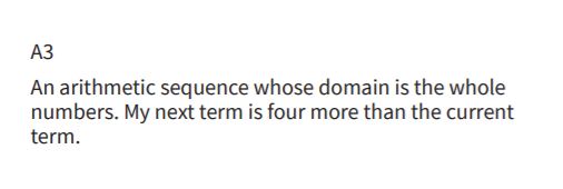 Welcome to It’s a Match! The objective of this activity is to separate the cards you are given into four sets of three cards that describe the same function. You are given A1, A2, A3 & A4 as your beginning cards. You will have four different functions. Each of the three cards within a set has a different representation given. After you have sorted the cards into sets of three, use your blank cards to create a fourth representation for each set. Be sure to use a different representation than those that are provided. Ultimately, each of the four sets will have four cards—the three that were printed and the one you created.