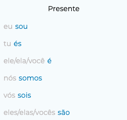 sou | arrow_right_alt | Eles/Elas/Vocês |