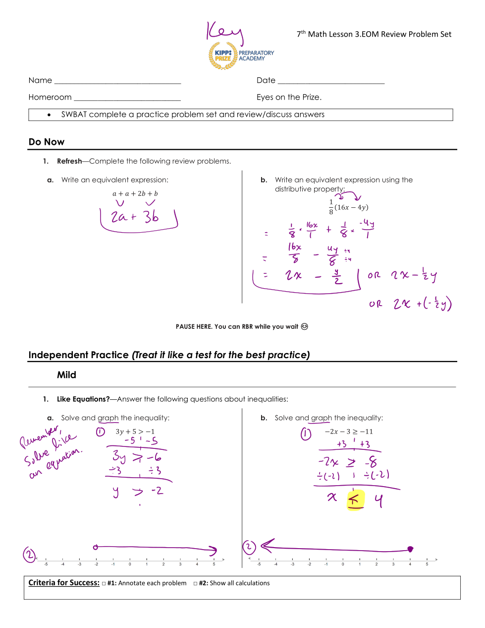 When everyone is done, we will have partner time to find mistakes. You will also have access to an answer key to see suggestions for how to solve each problem.