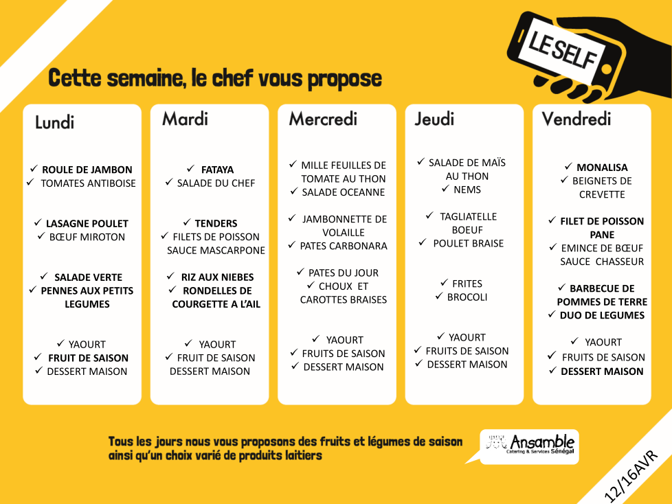 Pick any day of the week and tell me IN ENGLISH what you think is being served.Note: You will not know every word. Guessing is encouraged based on cognates and the French you already know. If you respond with direct translations of words that are not cognates/in our vocabulary, I will know you looked it up. DO NOT DO THAT.Do not copy & paste, use Google Translate, etc.