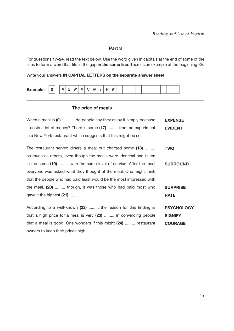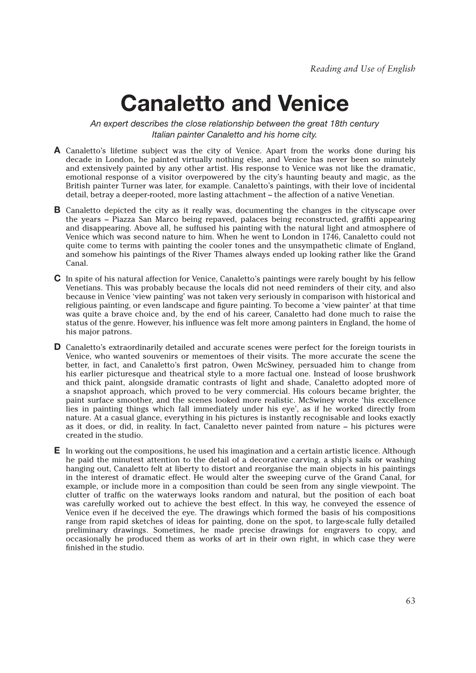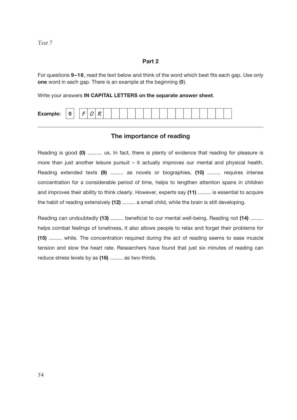 B2 SAMPLE TEST READING AND USE OF ENGLISH