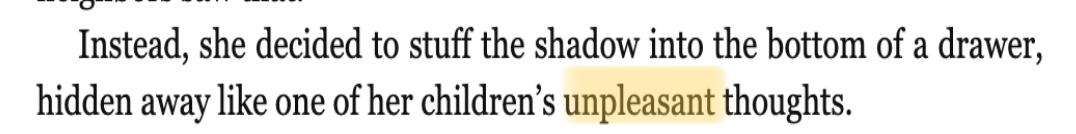 What does it mean when she said "hidden away like one of her children's unpleasant thoughts." ?