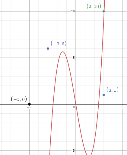 If f(x) is a polynomial passing through (-1, -4), (1, 0), and (2, 5), what is f(-3)?