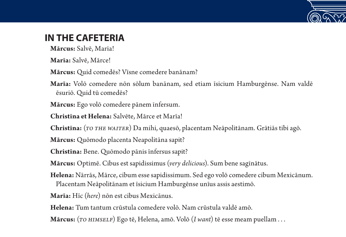 Mārcus: (to himself) Ego tē, Helena, amō. Volō (I want) tē esse meam puellam . . .
