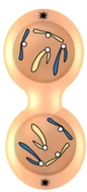 - chromosomes are at opposite ends of the cell and nuclei form around them, cytoplasm splits into two new cells