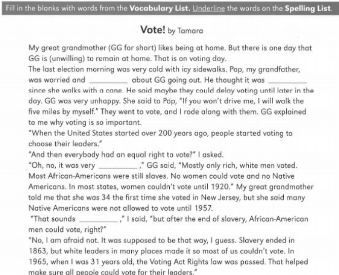 Tamara states that voting in the past was unfair. What is your opinion? What information supports your opinion?